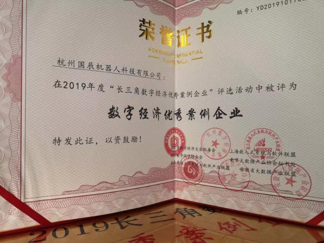 杭州國(guó)辰機(jī)器人科技有限公司榮獲“長(zhǎng)三角數(shù)字經(jīng)濟(jì)創(chuàng)新案例企業(yè)”稱號(hào)